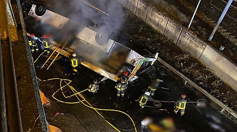 Súlyos buszbaleset történt kedd este az olaszországi Mestrében: egy busz lezuhant a Vempa nevű felüljáróról a vasúti sínekre. Az olasz sajtó híradásai szerint a busz gázüzemű volt, és a zuhanás után kigyulladt.